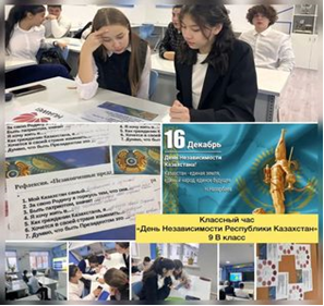 Жетісу ауданы №193 ЖББ мектебінде Қазақстан Республикасының тәуелсіздік күніне орай "Тәуелсіздік жетістіктері " тақырыбында 1-11 сыныптар арасында бірыңғай сынып сағаттары өтті.