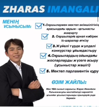 2023-2024 оқу жылының "Өзін-өзі басқару ұйымы, 10Б сынып оқушысы Задалинова Рамина бағдарлама парақшасы.