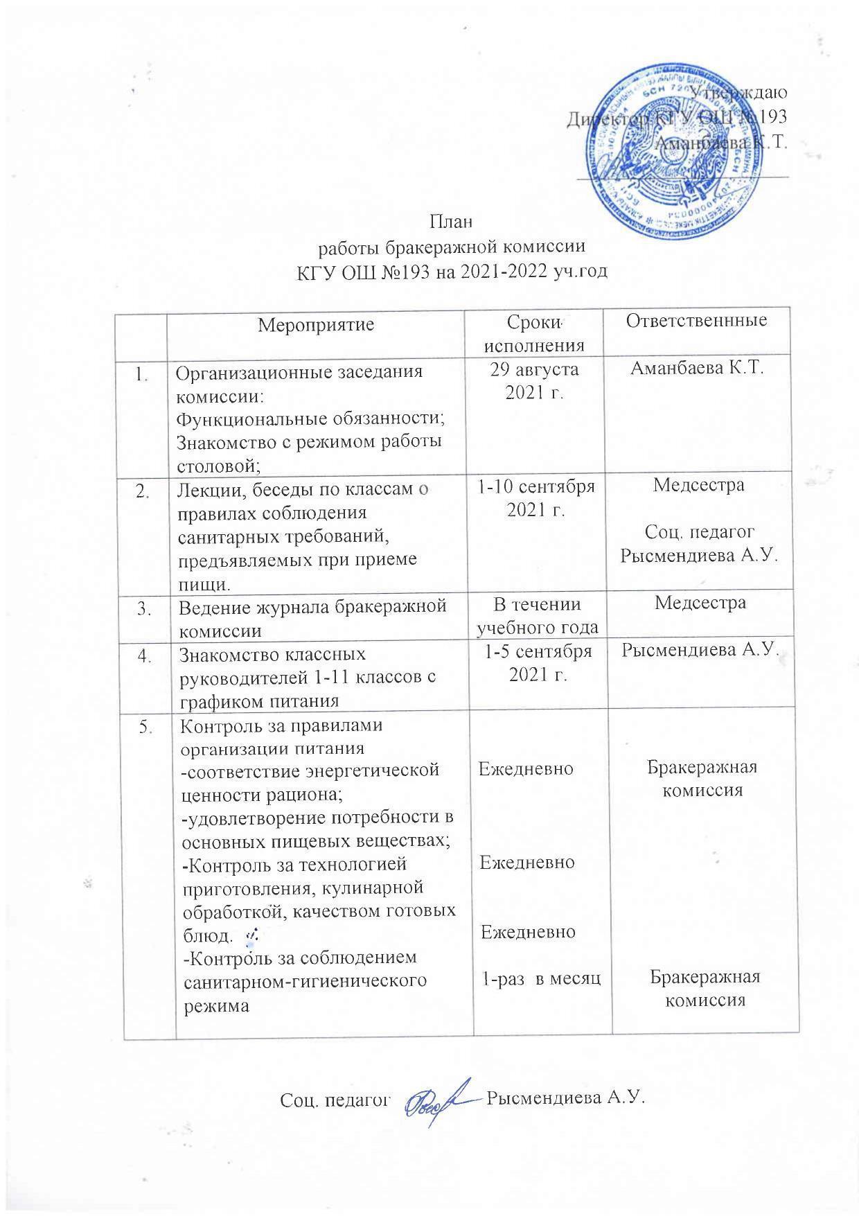 » Бракеражная комиссия за 2021-2022 уч. год.