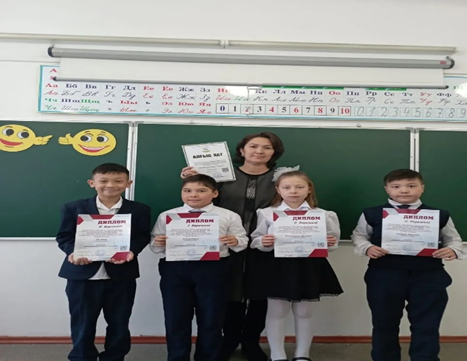 09.01.2023ж. Республикалық «Жас Дарын» дарынды балалар орталығы ұйымдастырған «БІЛІМ-ОЛИМП-YII» Республикалық «Жас Дарын» дарынды балалар орталығы ұйымдастырған «BILIM-OLIMP-YII» Республикалық пәндік олимпиадада «Математика» пәнінен көрсеткен жетістігі үшін Алматы қаласы, Жетісу ауданы, &193 орта мектептің 4 сынып оқушысы I, II дәрежелі Дипломмен марапатталды. Жетекшісі Курманбекова А.Т.