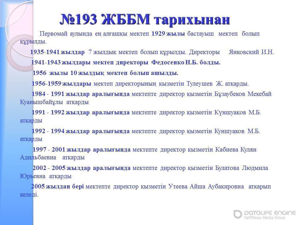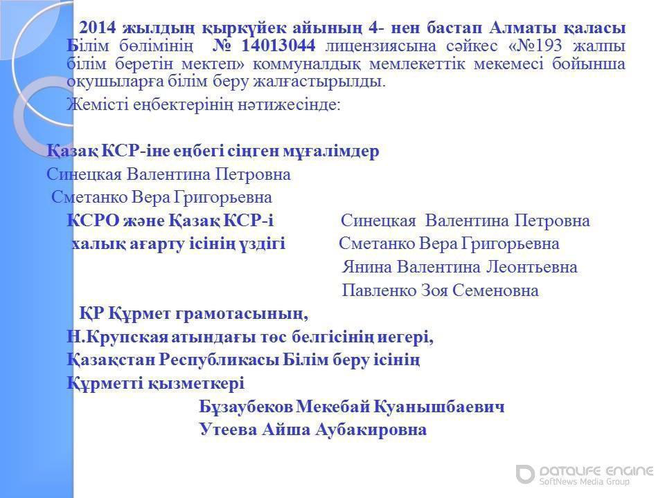 КГУ «Общеобразовательная школа №193»УO г.Алматы