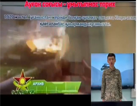 «»Ауған соғысы-ұмытылмас тарих» атты 9А сыныпта патриоттық сабақ өткізілді.