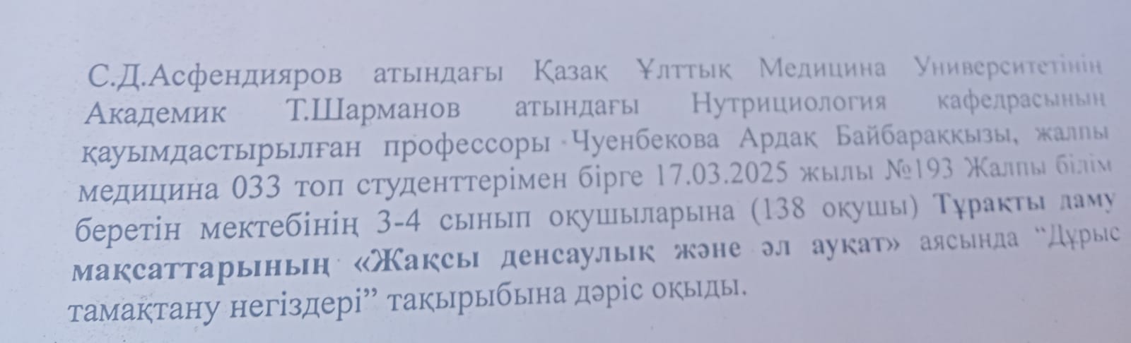 "Дұрыс тамақтану негіздері" такырыбы.