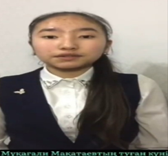 08.02.2021ж. Туған халқының талантты ақынына, М.Мақатаевтің әдебиетіне, еліне деген сүйіспеншілік сезімін оятып, адамгершілікке тәрбиелеу мақсатында #193 ЖББМ -тің қазақ тілі мен әдебиет пәнінің мұғалімі Сарсенова Ж.М 9- сынып оқушылары арасында " Жырлайды жүрек!" тақырыбында челлендж өткізілді.