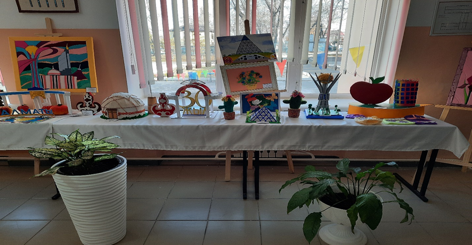06 желтоқсан 2021 0 1 2 3 4 5 "30 үздік қолөнер бұйымы" тақырыбы. 06.12.21ж. Қазақстан Республикасының Тәуелсіздігіне 30 жыл толуына орай #193 ЖББМ-тің технология пәнінің мұғалімдері Есалиев Ж.К., Диханбаева А.Ш., Омарова А.С. ұйымдастыруымен " 30 үздік қолөнер бұйымы" тақырыбында көрме жасалды.