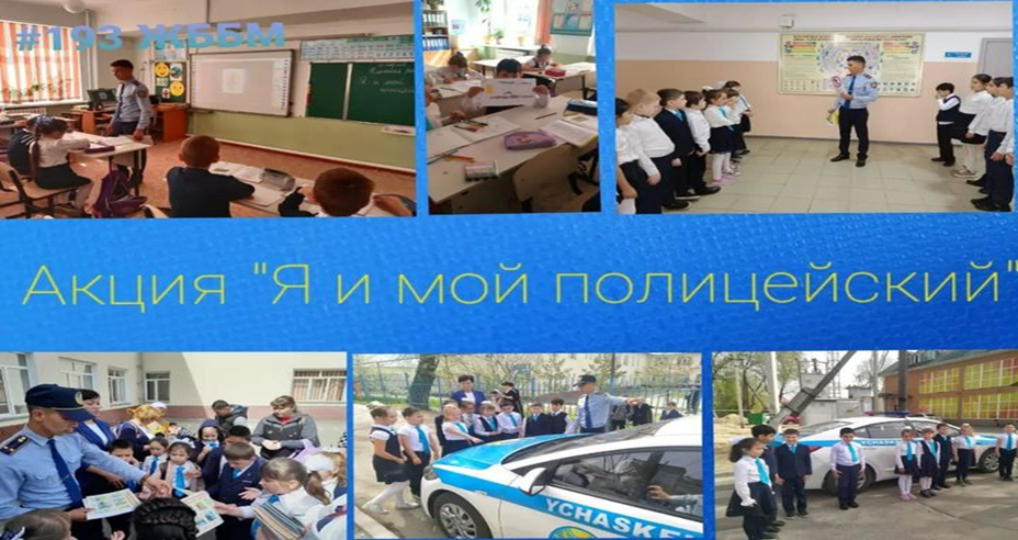 11.04.2022г. В рамках проведения акции "Я и мой полицейский" с учащимися 1-4 классов КГУ "ОШ#193" была проведена беседа сотрудниками УИП ОЮП ОМПС УП Жетысуского района лейтенантом полиции Джураевым Б.Г. и Есенкуловым И.К.