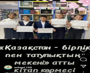 «Оқуға құштар мектеп» жобасы аясында Республика күніне орай «Казахстан-бірлік пен татулықтың мекені» тақырыбында кітап көрмесі ұйымдастырылды. Мектеп кітапханашылары Қызайбек М., Самижан Г.