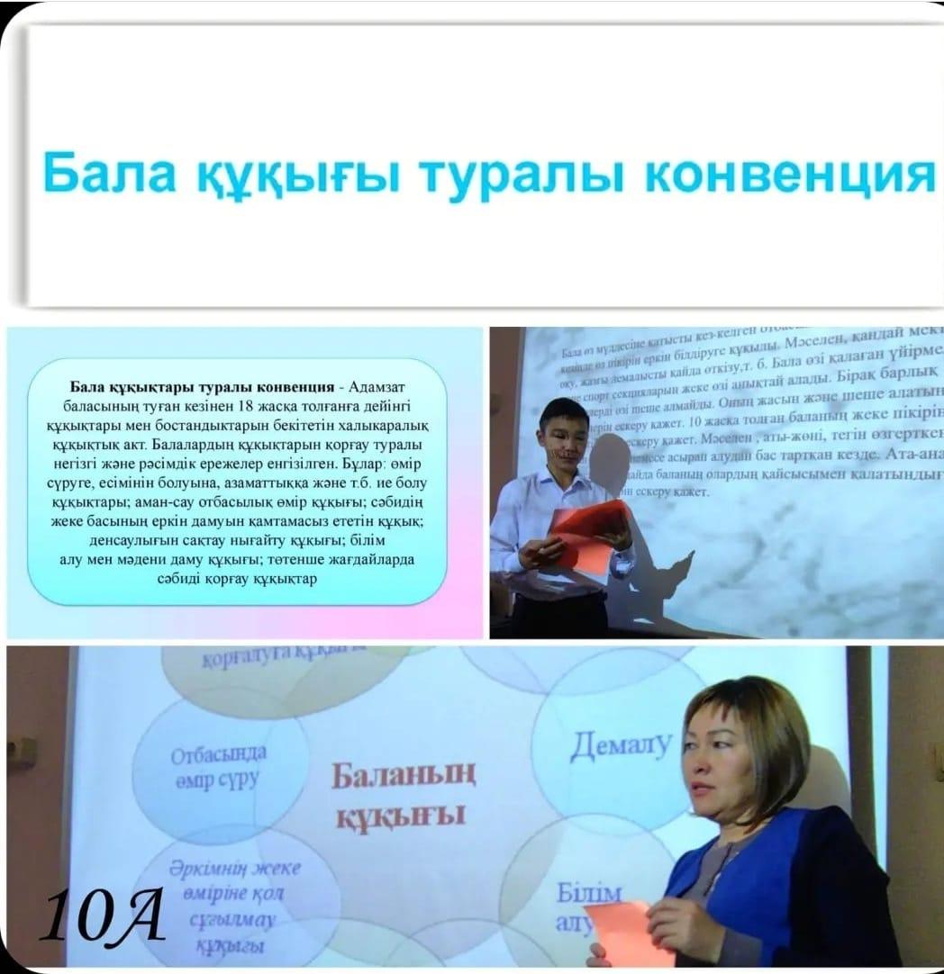 #193 жалпы білім беретін мектепте 10 А сыныптарда «Бала құқығы конвенциясы» атты тәрбие сағаты өтілді. Сынып жетекшісі Дауленова С.Н.