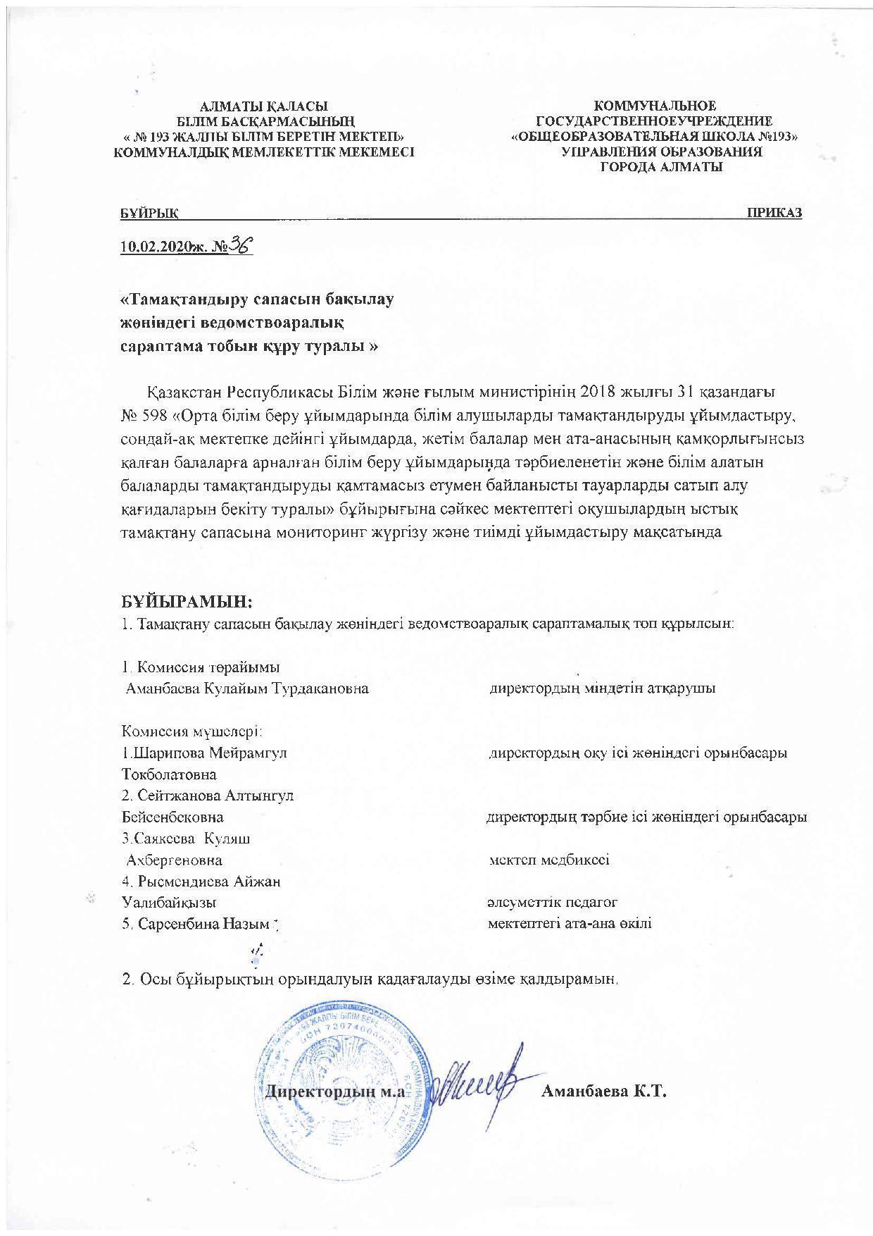 КГУ «Общеобразовательная школа №193»УO г.Алматы