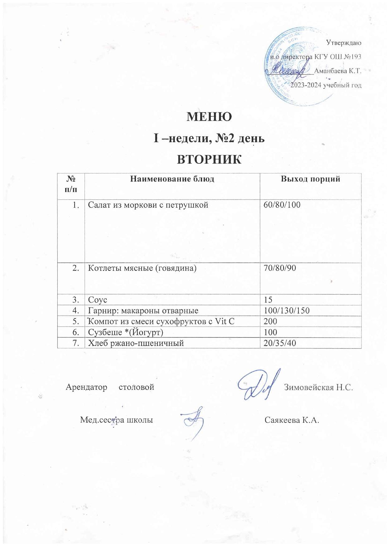 Меню 1-недели 2-день