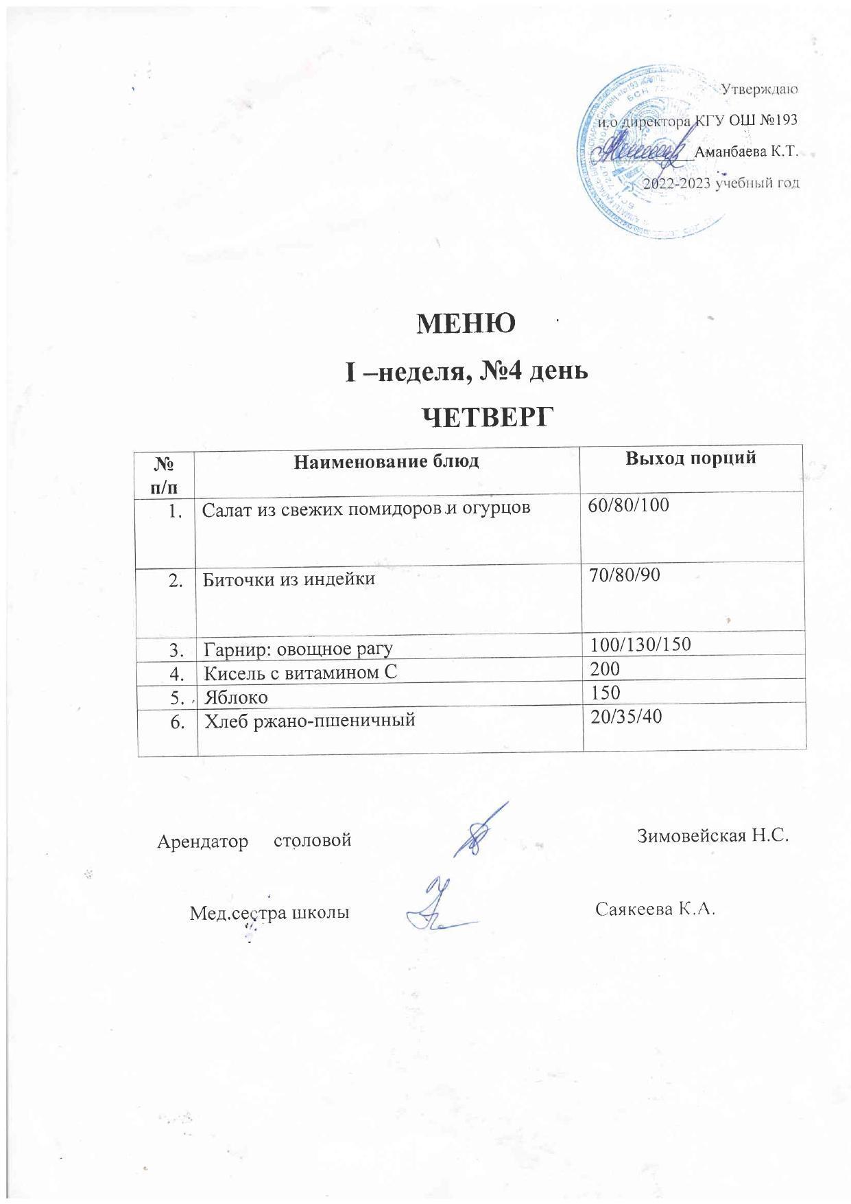 Меню 1 -недели 4-день