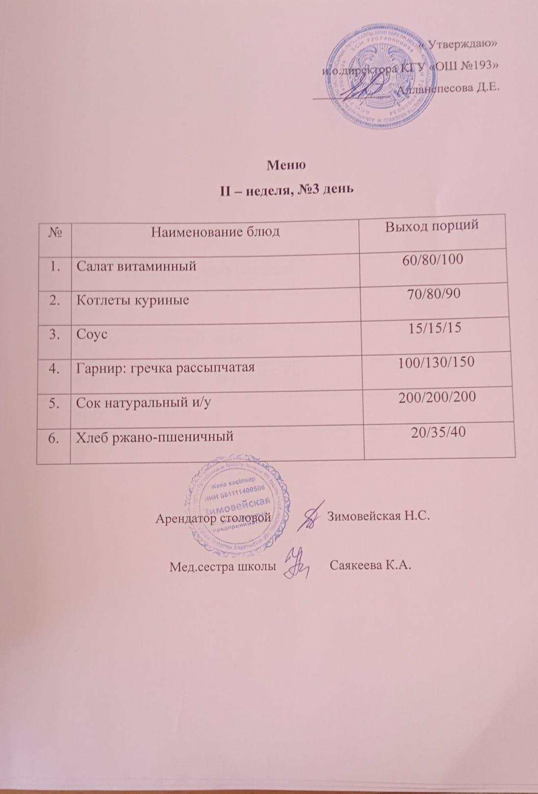 Ас мәзірі 2 апта 3 күн